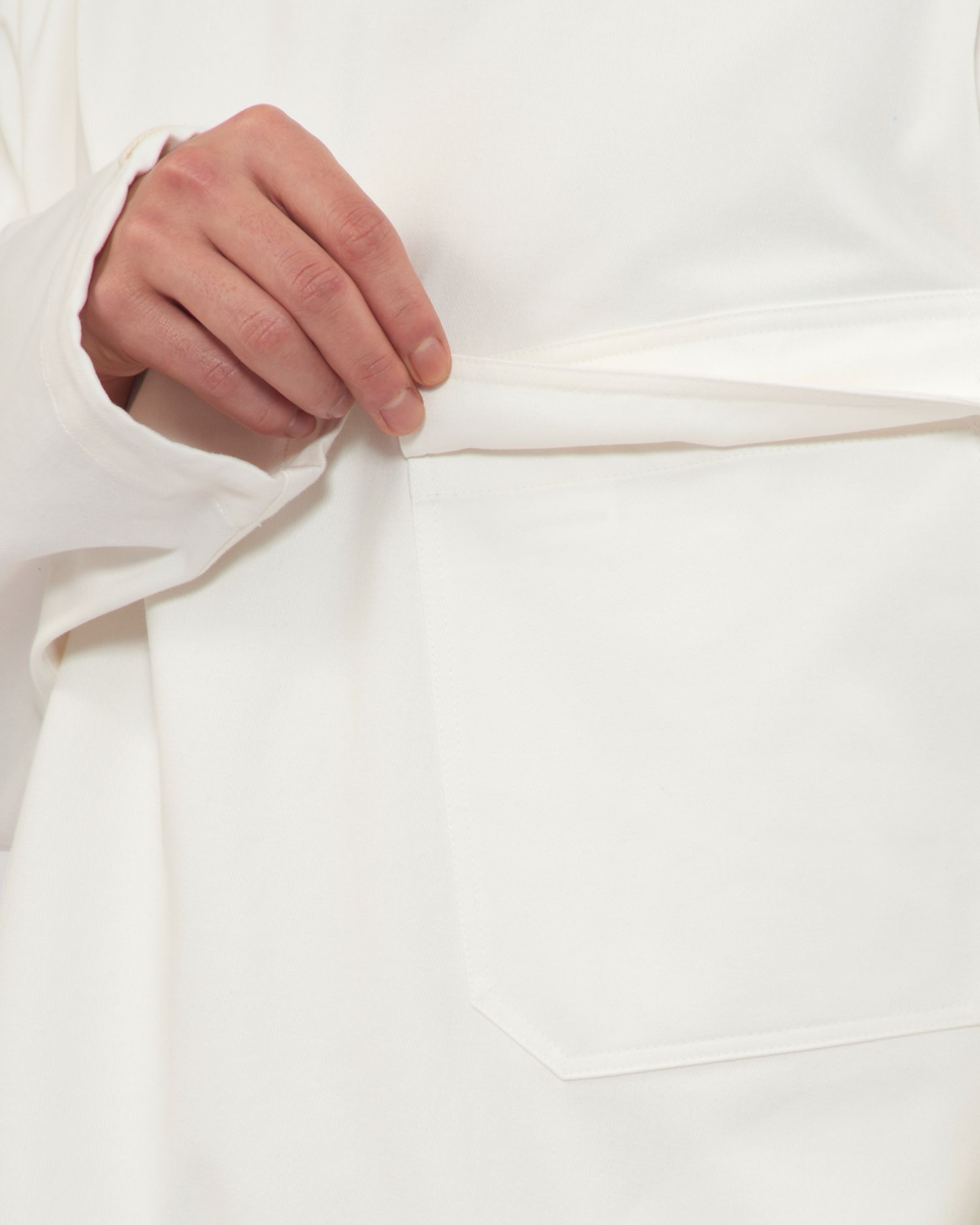 Function is just as important to us as form. We want to make sure everything we create is done so with purpose. So instead of treating pockets as an afterthought, or something simply decorative, we’ve included them subtly into the seam construction. This simple solution allows us to feature practical pockets, which don’t disrupt the shape or clean lines of the garment.
