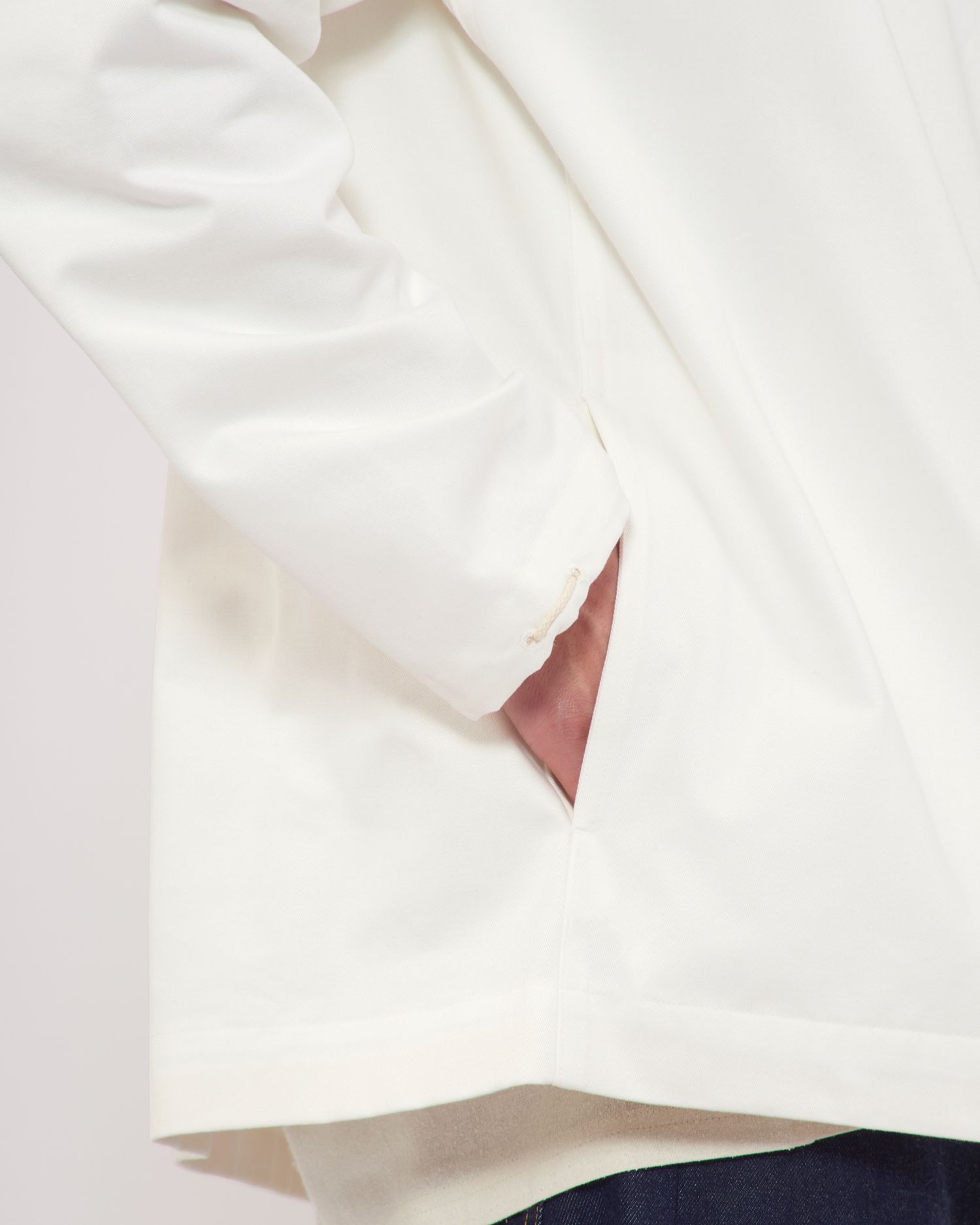 Introducing our Deck Smock, a loose fitting hooded overgarment, made with medium-weight brushed cotton twill. Features include two hidden side seam pockets, adjustable cuffs, hem and hood, as well as a large front chest patch pocket.