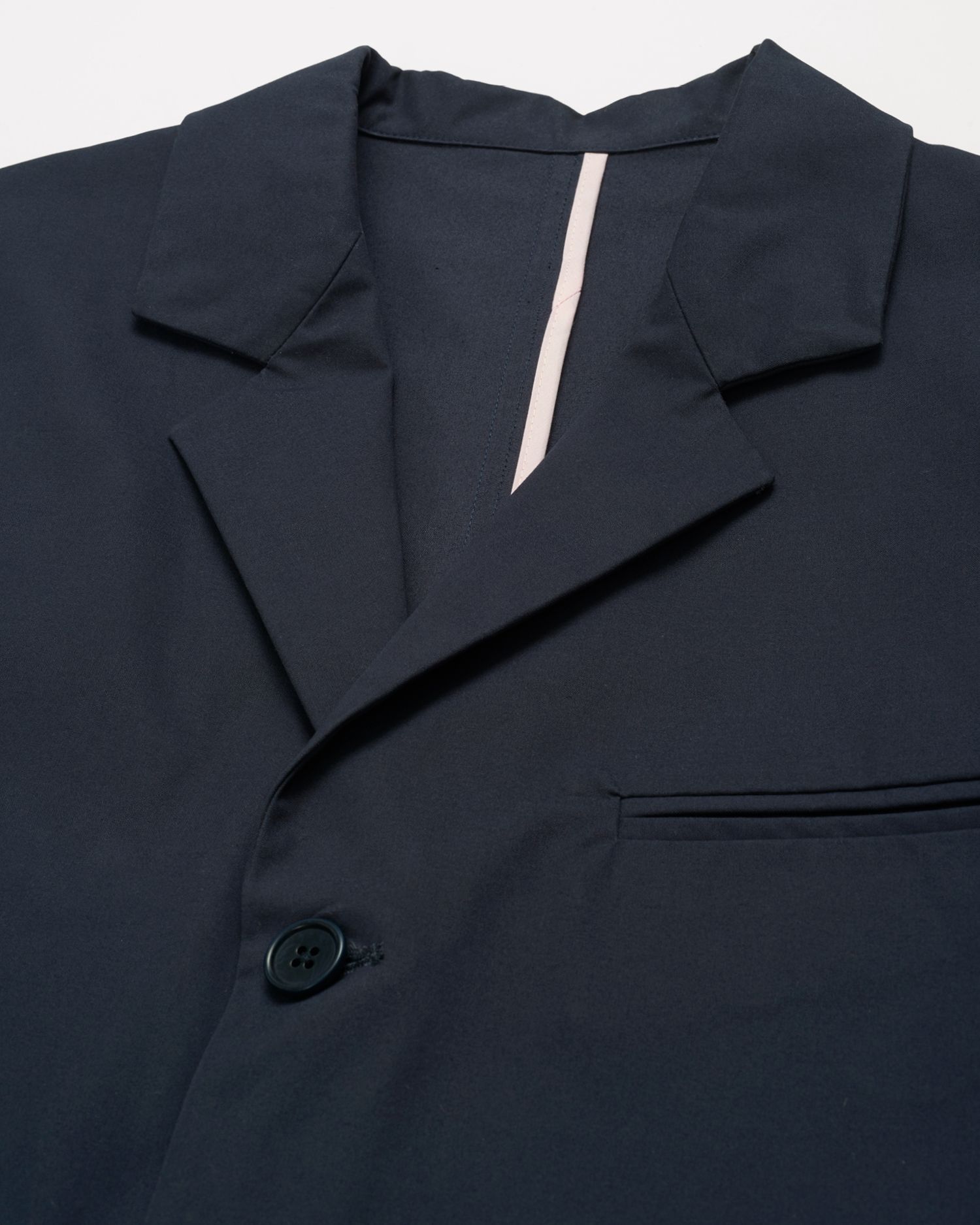 Introducing the Managers Jacket, a 3 button blazer style jacket with a work wear edge. Made with British Brisbane and moss fine quality cotton. The jacket has one inside pocket, two outer lower patch pockets and one jetted breast pocket, finished with blue corozo buttons and PE team pink binding.