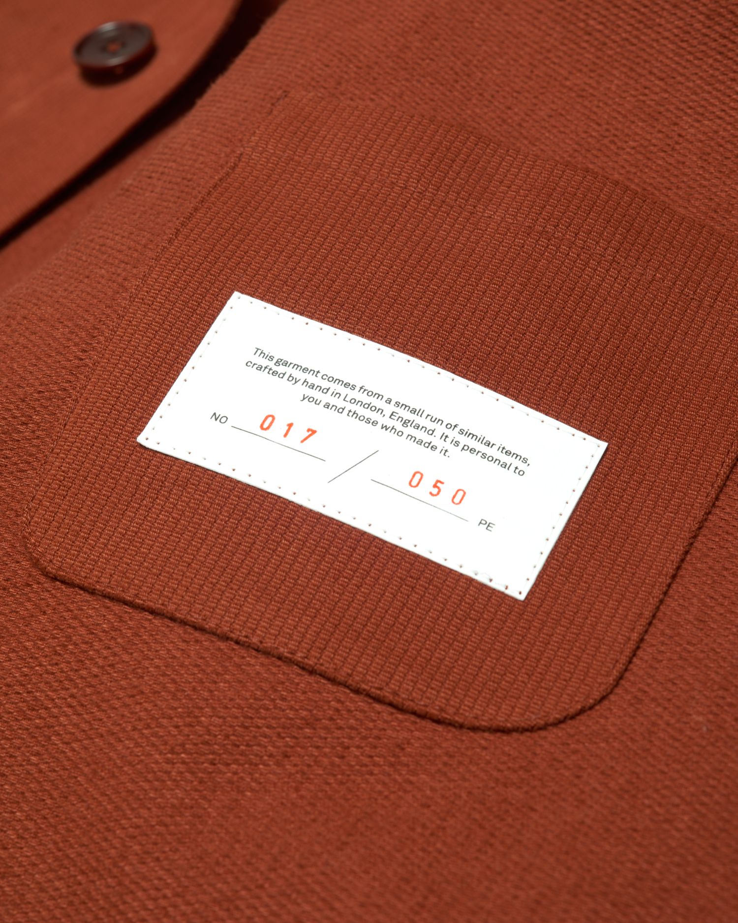 “This garment comes from a small run of similar items, crafted by hand in London, England. It is personal to you and those who made it.”